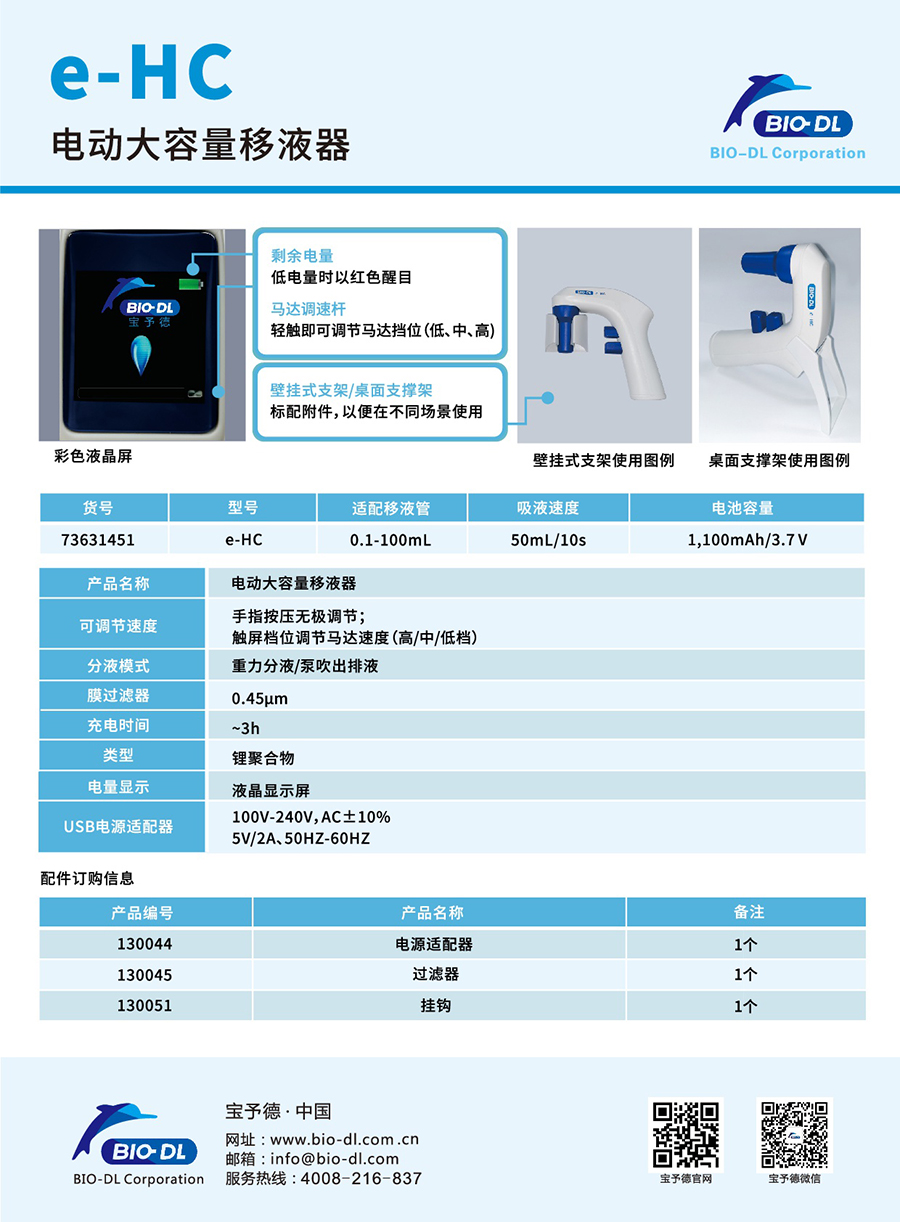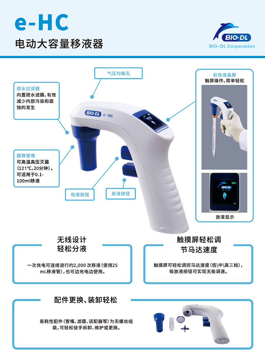 BIO-DL e-HC電動大容量移液器,大容量移液器,電動移液器,具備出色的人體工程學設計,靈敏的速度控制功能可確保對多種液體進行輕松順暢移液與分液。